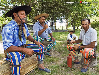 Nunca falta el gaucho que anda con su guitarra. Canta o recita unas coplas que, cuando se suma otro músico o payador, se transformaba en payada, una puja poética donde con ingenio y talento en el verso, relata con humor o dolor sus vivencias y sentimientos. Es muy extenso el acervo de poesía gauchesca.