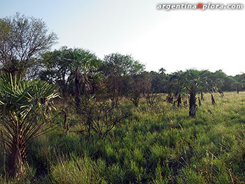 pastizales, que se componen de espartillo como especie dominante, acompañado de muchas otras herbáceas y a menudo de elementos arbóreos (formando sabanas) de las especies de bosques bajos; cañadas, constituidas por pajonales puros (de paja de techar, paja brava, paja boba y otras) o por palmares, al aparecer en el pajonal la palma blanca (o caranday); y esteros, los cuales se diferencian de las anteriores por tener un fondo de agua libre sin cubierta vegetal, poseen diversas especies acuáticas, como el pirí, peguajó, totoras, junco, cucharero, camalote y otras.